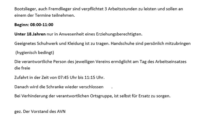 | 5.Arbeitseinsatz : 22.08.2026 OG Niesky | 6.Arbeitseinsatz : 26.09.2026 "Bootslieger" |